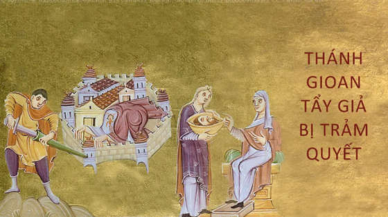 Lập tức, vua sai thị vệ đi và truyền mang đầu ông Gioan tới. Thị vệ ra đi, chặt đầu ông ở trong ngục, bưng đầu ông trên một cái mâm trao cho cô gái, và cô gái trao cho mẹ. Nghe tin ấy, môn đệ đến lấy thi hài ông và đặt trong một ngôi mộ. (Mc 6,17-29)