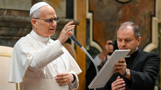 Đức Thánh cha Lêô: Tôi nghĩ rằng nguồn cảm hứng cơ bản của Tông hiến Predicate Evangelium là rất có giá trị và quan trọng, trong văn kiện đã trình bày cách hiểu mới mẻ về Tòa Thánh, tức là Giáo triều Roma, như là một thực tại phục vụ vừa cho thừa tác vụ của giáo hoàng vừa cho các giám mục địa phương. Nó phải bảo đảm theo cả hai cách đó. Nhiều, rất nhiều giám mục đã nói với tôi, ngay từ thời tôi còn ở Bộ Giám mục, rằng khi các ngài đến Roma, các ngài thấy lo sợ. Tôi được gọi về Roma để làm gì? Có vấn đề gì vậy? Thay vì hiểu rằng Tòa Thánh ở đây để trợ giúp họ, để phục vụ họ.