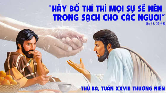Bấy giờ Chúa phán cùng ông ấy rằng: “Này các ông, những người biệt phái, các ông lau rửa bên ngoài chén đĩa, nhưng nội tâm các ông đầy tham lam và gian ác. Hỡi những kẻ ngu dại, chớ thì Ðấng đã tạo thành cái bên ngoài, lại chẳng tạo thành cả cái bên trong sao? Hãy đem những cái bên trong ra mà bố thí, thì mọi sự sẽ nên trong sạch cho các ông”.
