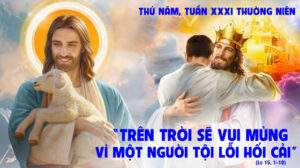 “Người nào trong các ông có một trăm con chiên mà bị mất một con, lại không để chín mươi chín con kia ngoài đồng hoang, để đi tìm cho kỳ được con chiên bị mất? Tìm được rồi, người ấy mừng rỡ vác lên vai. Về đến nhà, người ấy mời bạn bè, hàng xóm lại, và nói: “Xin chung vui với tôi, vì tôi đã tìm được con chiên của tôi, con chiên bị mất đó. Vậy, tôi nói cho các ông hay: trên trời cũng thế, ai nấy sẽ vui mừng vì một người tội lỗi ăn năn sám hối, hơn là vì chín mươi chín người công chính không cần phải sám hối ăn năn.