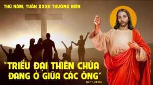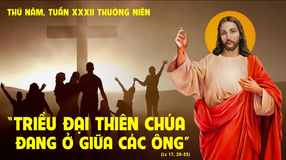 2.Suy Niệm: Nhóm biệt phái hỏi Chúa Giêsu bao giờ triều đại Nước Thiên Chúa đến? Chúa cho biết: Nước Trời đang tới và đang ở ngay bên. Họ không hiểu! Thật ra, Nước Trời đã khai mạc ở trần gian với sự hiện diện của Đức Giêsu, Đấng thiết lập Nước Thiên Chúa ở trần gian nầy, sẽ kết thúc vào ngày tận thế, khi Người ngự đến phát xét chung. Là công dân Nước Trời, chúng ta hãy mặc lấy con người mới trong Chúa Kitô, sống cảnh giác khỏi mọi giả trá và sẳn sàng đón nhận đau khổ, để chờ đón Chúa ngự đến vinh quang.