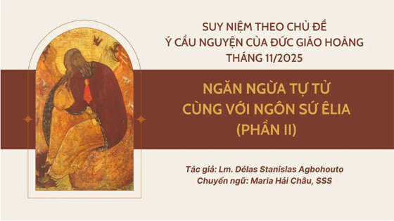 Sau đây là phần II trong bài suy niệm theo chủ đề ý cầu nguyện tháng 11/2025 của Đức Giáo hoàng: Cầu cho việc ngăn ngừa tự tử.Tháng 11/2025 – Theo ý Đức Giáo hoàng, Giáo hội cầu nguyện đặc biệt cho những ai đang tuyệt vọng, để họ tìm thấy ánh sáng và hy vọng nơi Thiên Chúa. Hành trình của ngôn sứ Êlia – người đã từng xin Chúa cất mạng sống mình nhưng lại được Thiên Chúa nâng dậy – trở thành lời mời gọi chúng ta tin rằng ngay giữa bóng tối sâu thẳm nhất, ân sủng vẫn đang âm thầm chạm đến, để dẫn ta trở lại với sự sống.