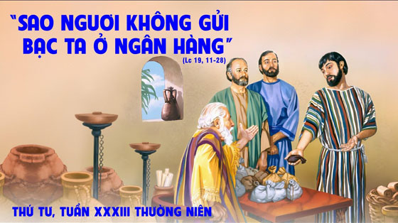 2.Suy niệm: Ở thời nào, nơi nào cũng có hai hạng người: lười biếng và siêng năng. Trong đời sống thiêng liêng cũng thế, có người luôn lo tu tâm sửa tính, nhưng cũng có người ù lì hoang phí, sống buông thả theo bản năng, không làm ích lợi gì cho mình cho người. Chúa Giêsu đưa ra dụ ngôn về các nén bạc để giúp các môn đệ biết cách sử dụng nén bạc cuộc đời mình. Mỗi người đều được Thiên Chúa trao cho những nén bạc cuộc đời. Điều quan trọng không phải là ta sinh lợi được nhiều hay được ít, nhưng là cách thế ta sử dụng cuộc đời mình thế nào. Khi Chúa đến, chúng ta sẽ trình diện tất cả những gì mình cố gắng sinh lợi và đáng hưởng hạnh phúc bên Chúa.