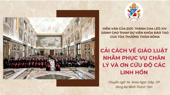 Sáng 21/11/2025, tại Điện Tông tòa Vatican, Đức Thánh cha Lêô XIV đã tiếp kiến các tham dự viên của khóa đào tạo Pháp lý–Mục vụ do Tòa Thượng thẩm Rôma tổ chức. Sau đây là toàn văn Việt ngữ bài Diễn văn của Đức Thánh Cha:DIỄN VĂN CỦA ĐỨC GIÁO HOÀNG LÊÔ XIV