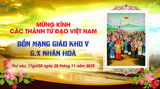 Trực tiếp: Lễ các Thánh Tử Đạo Việt Nam “BỔN MẠNG GIÁO KHU V G.X NHÂN HOÀ” lúc 17:30 ngày 28/11/2025