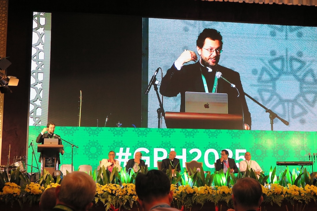 Đức Hồng y Giorgio Marengo, IMC (Dòng Truyền Giáo Consolata) hiện là Tổng Giám mục Mông Cổ cũng chia sẻ về việc truyền giáo hôm nay. Chúng ta là những vị đạo sĩ sẽ lên đường trở về lại đất nước chúng ta. Đến từ Mông Cổ, tôi cũng là một vị đạo sĩ, và sẽ trở về kể câu chuyện Chúa Giêsu cho dân tộc mình. Cần xây dựng mối tương quan để gặp gỡ người khác thân tình, từ đó chúng ta có thể chia sẻ Lời Chúa với họ. Kinh nghiệm về các cuộc trò chuyện trong Chúa Thánh Thần tại đây rất cảm động, với những câu chuyện chúng ta chia sẻ cho nhau. Phúc Âm hóa không chỉ là chia sẻ hiểu biết nhưng đi vào tương quan. Chúng ta sẽ đi bằng những con đường khác, hãy trân trọng những khác biệt và những phương cách khác nhau để chia sẻ niềm tin. Á châu đóng góp những phương cách phong phú cho Giáo hội. Chúa Giêsu đã chọn cách rất khác để đến với chúng ta. Hãy mở ra những cách mới để có những phép lạ của niềm tin. Luôn trân trọng những khác biệt, hãy làm sao để có thể khiêm tốn “biến mất” cho Chúa Giêsu hiện diện. Khiêm hạ đi đến với người khác để sinh kết hoa trái. Một giáo lý viên nhận được phép lạ khi dự đám tang một hồng y, khi thấy hòm chôn xuống, chị nhận biết Chúa không gởi đến những quyển sách nhưng là những con người bằng xương thịt. Lời Chúa nhập thể trong chúng ta.