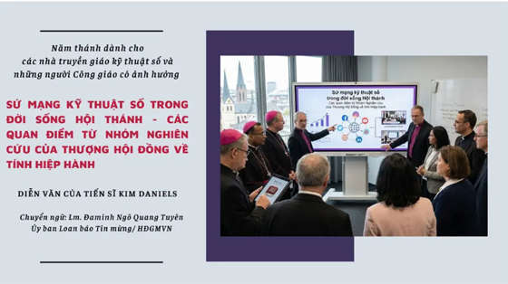 Tiến sĩ Kim Daniels đã có bài diễn văn cho các tham dự viên trong dịp Năm thánh dành cho các nhà truyền giáo kỹ thuật số và những người Công giáo có ảnh hưởng diễn ra tại Vatican từ ngày 28-29/7/2025.Bài trình bày này khảo sát sứ mạng của Hội thánh trong môi trường kỹ thuật số, dựa trên công trình của Nhóm Nghiên cứu 3 về tính hiệp hành. Bài nhấn mạnh rằng thế giới kỹ thuật số không chỉ là một tập hợp các công cụ, mà là một không gian văn hóa đích thực, định hình các mối tương quan, cộng đoàn và việc loan báo Tin mừng. Bốn nhận định chính được nêu bật: Cuộc cách mạng kỹ thuật số biểu thị một thay đổi thời đại, đòi hỏi sự dấn thân truyền giáo được canh tân; truyền thông kỹ thuật số phải lên tiếng cho những người không có tiếng nói, và thể hiện ưu tiên chọn lựa người nghèo; sứ mạng kỹ thuật số đòi hỏi việc huấn luyện có chủ đích và tinh thần truyền giáo, như mọi sứ vụ xuyên văn hóa khác; môi trường kỹ thuật số thúc đẩy tính hiệp hành qua việc lắng nghe, tham gia và chia sẻ trách nhiệm chung. Đồng thời, bài cũng nhìn nhận các thách đố như: tình trạng phân cực, các “buồng vang thông tin” (“echo chambers”), và sự phi nhân hóa. Do đó, Hội thánh được mời gọi nuôi dưỡng một nền văn hóa của nhân phẩm, sự gặp gỡ và chân lý trong tình yêu, trong thời đại kỹ thuật số này.