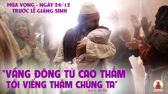 “Hài nhi hỡi, con sẽ mang tước hiệu là ngôn sứ của Đấng Tối Cao: Con sẽ đi trước Chúa, mở lối cho Người, bảo cho dân Chúa biết: Người sẽ cứu độ, là tha cho họ hết mọi tội khiên. Thiên Chúa ta đầy lòng trắc ẩn, cho Vầng Đông tự chốn cao vời viếng thăm ta, soi sáng những ai ngồi nơi tăm tối, và trong bóng tử thần, dẫn ta bước vào đường nẻo bình an”.