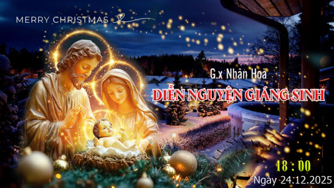 DIỄN NGUYỆN MỪNG CHÚA GIÁNG SINH. Lúc 18giờ00 ngày 24.12.2025. tại Giáo xứ Nhân Hoà. Được trực tiếp để phục vụ: Bệnh nhân, những người đau yếu, tản tật không thể đến nhà thờ được! Kính mời quý anh chị cùng hiệp thông cầu nguyện.