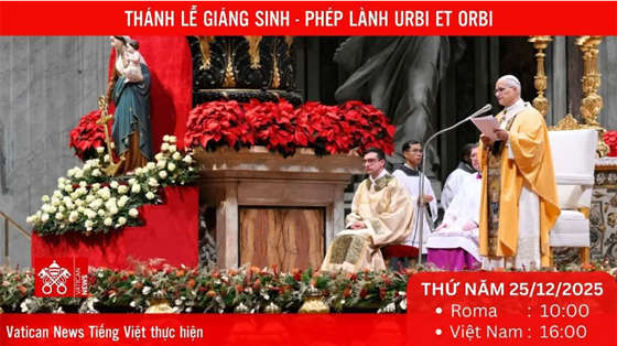 Trực tiếp Thánh lễ Giáng sinh 2025 và Phép lành toàn xá Urbi et Orbi của Đức Thánh cha Lêô XIV 26/12/2025 admin Giáo hội hoàn vũ, Tiêu điểm, Tin mới cập nhật 0 Vatican News Tiếng Việt truyền hình trực tiếp Thánh lễ Giáng sinh 2025 và Phép lành toàn xá Urbi et Orbi vào lúc 10g00 giờ Roma (tức 16g00 giờ Việt Nam) thứ Năm ngày 25/12/2025. Nguồn: vaticannews.va/vi Trực tiếp Thánh lễ Giáng sinh 2025 và Phép lành toàn xá Urbi et Orbi của Đức Thánh cha Lêô XIV