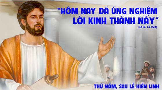 Khi ấy, Chúa Giêsu trở về Galilêa trong quyền năng của Thánh Thần và danh tiếng Người đồn khắp miền xung quanh. Người giảng dạy trong các hội đường của họ, và ai nấy đều ca tụng Người. Người đến Nadarét là nơi Người sinh trưởng, và theo thói quen của Người, Người vào hội đường ngày Sabbat, và đứng dậy đọc sách. Người ta trao cho Người cuốn sách Tiên tri Isaia. Người mở sách và gặp chỗ có chép rằng: “Thánh Thần Chúa ở trên tôi, vì Chúa đã xức dầu cho tôi, sai tôi đi rao giảng tin mừng cho người nghèo khó, chữa lành những người sầu khổ trong tâm hồn, loan tin giải thoát cho kẻ bị giam cầm, cho người mù được thấy, giải thoát người bị áp chế, công bố năm hồng ân của Thiên Chúa”. Người xếp sách lại, trao cho viên phụ trách, đoạn ngồi xuống. Mọi người trong hội đường đều đưa mắt chăm chú nhìn Người. Người bắt đầu nói với họ rằng: “Hôm nay đã ứng nghiệm lời Kinh Thánh tai các ngươi vừa nghe”. Và ai nấy đều công nhận lời Người và ngạc nhiên vì những lời hấp dẫn thốt ra từ miệng Người.