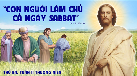 Vào một ngày Sabbat, Chúa Giêsu đi qua đồng lúa, môn đệ Người vừa đi vừa bứt lúa. Tức thì những người biệt phái thưa Người rằng: “Kìa Thầy xem. Tại sao ngày Sabbat người ta làm điều không được phép như vậy?” Người trả lời rằng: “Các ông chưa bao giờ đọc thấy điều mà Đavít đã làm khi ngài và các cận vệ phải túng cực và bị đói ư? Người đã vào nhà Chúa thời thượng tế Abiata thế nào, và đã ăn bánh dâng trên bàn thờ mà chỉ mình thượng tế được ăn, và đã cho cả các cận vệ cùng ăn thế nào?” Và Người bảo họ rằng: “Ngày Sabbat làm ra vì loài người, chứ không phải loài người vì ngày Sabbat; cho nên Con Người cũng làm chủ cả ngày Sabbat”.