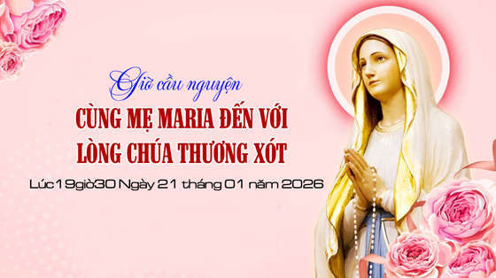 Giờ cầu nguyện “Cùng Mẹ Maria đến với Lòng Thương Xót Chúa” được phát vào ngày 21.01.2026. Để phục vụ cho những bệnh nhân trên giường bệnh, các cụ lớn tuổi, khuyết tật, đau yếu. Kính mời quý anh chị cùng hiệp thông cầu nguyện trên các Website, Face book: