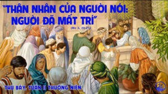2.Suy niệm: Là một người say mê công việc mà Chúa Cha giao phó. Nên đôi lúc ngay cả những người thân quen cũng không hiểu được hành động của Chúa Giêsu. Nghĩ như họ cũng có thể hiểu được: một người bình thường làm sao có thể từ bỏ cuộc sống an nhàn nơi làng Nazareth để bôn ba không chỗ gối đầu, một người bình thường làm sao chọn cho mình những người môn đệ không có gì nổi bật, một người bình thường làm sao dám đương đầu với các nhà lãnh đạo Do thái giáo…Đúng Chúa Giêsu không phải là một người bình thường mà Ngài là Chúa. Ngài không chọn cho mình cuộc sống an nhàn, cũng không chọn cho mình con đường dể dãi… nhưng cuộc sống của Ngài là cuộc sống vâng phục thánh ý Chúa Cha cho dù cuộc sống đó người ta coi như là bất thường, như là mất trí. Là những người Kitô hữu đôi lúc chúng ta cũng sẽ bị người đời coi là bất bình thường khi không theo guồng máy của xã hội hưởng thụ. Nhưng hãy nhớ rằng cùng đích của chúng ta là chính Chúa chứ không phải xã hội mau qua này,