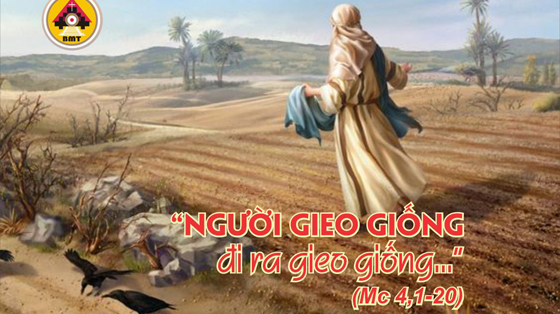 Khi ấy, Chúa Giêsu bắt đầu giảng dạy ở bờ biển và có đám đông dân chúng tụ lại gần Người, nên Người xuống ngồi trong một chiếc thuyền trên mặt biển, tất cả đám đông thì ở trên đất theo dọc bờ biển. Người dùng dụ ngôn mà dạy họ nhiều điều, và khi giảng, Người nói với họ rằng: “Các ngươi hãy nghe! Này người gieo hạt đi gieo hạt giống. Khi gieo, một phần hạt rơi xuống vệ đường và chim trời đến ăn hết. Phần khác rơi trên đất sỏi, nơi không có nhiều đất. Hạt giống đã mọc lên ngay, vì lớp đất không sâu. Nhưng khi mặt trời mọc lên, hạt giống bị nắng đốt và vì không rễ, nên bị chết khô. Một phần khác rơi vào bụi gai, và gai mọc lên làm hạt giống chết và không sinh hoa trái được. Phần hạt khác rơi vào đất tốt, mọc lên, nẩy nở và sinh quả, hạt thì sinh được ba mươi, hạt được sáu mươi, hạt được một trăm”. Và Người phán rằng: “Ai có tai để nghe thì hãy nghe”.