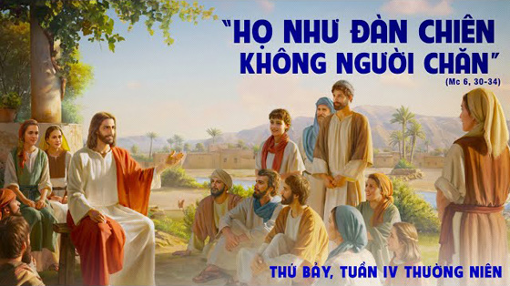 Khi ấy, các tông đồ hội lại bên Chúa Giêsu và thuật lại với Người mọi việc các ông đã làm và đã giảng dạy. Người liền bảo các ông: “Các con hãy lui vào nơi vắng vẻ mà nghỉ ngơi một chút”. Vì lúc ấy dân chúng đến tấp nập đến nỗi các tông đồ không có thì giờ ăn uống. Vậy các ngài xuống thuyền, chèo tới một nơi vắng vẻ hẻo lánh. Thấy các ngài đi, nhiều người hiểu ý, và từ các thành phố, người ta đi bộ kéo đến nơi đó và tới nơi trước các ngài. Lúc ra khỏi thuyền, Chúa Giêsu thấy dân chúng thật đông, thì động lòng thương, vì họ như đàn chiên không người chăn, và Người dạy dỗ họ nhiều điều.