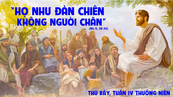Khi ấy, các tông đồ hội lại bên Chúa Giêsu và thuật lại với Người mọi việc các ông đã làm và đã giảng dạy. Người liền bảo các ông: “Các con hãy lui vào nơi vắng vẻ mà nghỉ ngơi một chút”. Vì lúc ấy dân chúng đến tấp nập đến nỗi các tông đồ không có thì giờ ăn uống. Vậy các ngài xuống thuyền, chèo tới một nơi vắng vẻ hẻo lánh. Thấy các ngài đi, nhiều người hiểu ý, và từ các thành phố, người ta đi bộ kéo đến nơi đó và tới nơi trước các ngài. Lúc ra khỏi thuyền, Chúa Giêsu thấy dân chúng thật đông, thì động lòng thương, vì họ như đàn chiên không người chăn, và Người dạy dỗ họ nhiều điều.