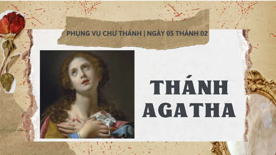 Khi đọc tác phẩm “Passion” về cuộc tử đạo của ngài, người ta có thể suy ra rằng Thánh Agatha sinh năm 235, dưới chân núi Etna, trong một gia đình quý tộc giàu có. Năm 250, sắc chỉ của hoàng đế Decius chống lại các Kitô hữu đã gây ra một cuộc bách hại khốc liệt. Tại Catane, chính viên quan tổng đốc tàn bạo Quinziano đã trực tiếp thi hành sắc chỉ ấy và đặc biệt nhắm đến Agatha.PHỤNG VỤ CHƯ THÁNH