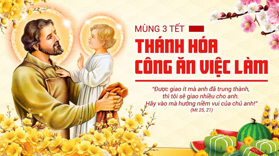 Mồng 3, thánh hoá công ăn việc làm, Chúa ban cho mỗi người tuỳ theo khả năng hoàn cảnh của từng người, nói một cách khác Chúa đã khởi sự và Người chờ đợi chúng ta hoàn tất. Xin Chúa thánh hoá những công việc chúng con làm và nâng đỡ chúng con luôn trong đời sống.