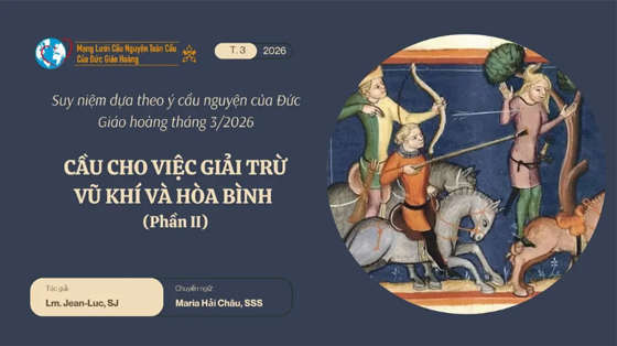 Trong tháng Ba này, chúng ta cùng cầu nguyện để các quốc gia hướng tới việc giải trừ vũ khí một cách hiệu quả, đặc biệt là giải trừ vũ khí hạt nhân, và để các nhà lãnh đạo thế giới chọn con đường đối thoại và ngoại giao thay vì bạo lực.