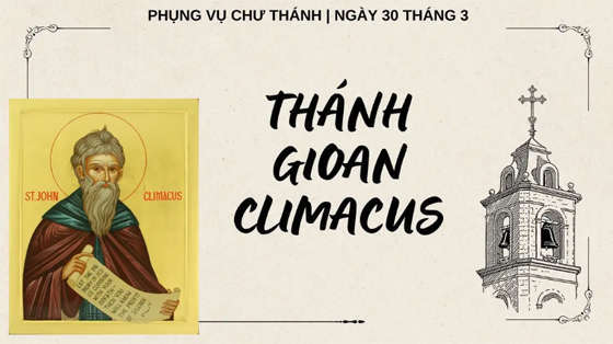 Người ta biết rất ít về Thánh Gioan Climacus, ngài sống vào thế kỷ VII, nhưng cuộc đời và các tác phẩm của ngài lại rất nổi tiếng trong Truyền thống Kitô giáo. Thánh Gioan Climacus sinh tại Syria, khoảng năm 575. Khi mới 16 tuổi, Gioan gia nhập Đan viện Núi Sinai và trở thành môn đệ của Viện phụ Martirius. Năm 20 tuổi, ngài chọn đời sống ẩn tu trong một hang động. Tại đây, suốt 40 năm, ngài chuyên chăm học hỏi và suy niệm Kinh thánh, đồng thời toàn hiến cho đời sống cầu nguyện.
