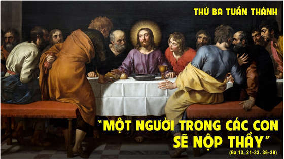 Khi ấy, (Chúa Giêsu đang ngồi ăn với các môn đệ), tâm hồn Người bị xao xuyến, nên Người tuyên bố: “Thật, Thầy nói thật cho các con biết, một người trong các con sẽ nộp Thầy”. Các môn đệ nhìn nhau phân vân không biết Người nói về ai. Có một môn đệ được Chúa Giêsu yêu quý, đang ở bàn ăn gần lòng Chúa Giêsu. Vậy Phêrô làm hiệu cho môn đệ ấy và nói: “Hỏi xem Thầy nói về ai đó”. Môn đệ ấy nghiêng mình sát ngực Chúa Giêsu và hỏi Người: “Thưa Thầy, ai vậy?” Chúa Giêsu trả lời: “Thầy chấm miếng bánh trao cho ai là người đó”. Và Người chấm một miếng bánh trao cho Giuđa, con Simon Iscariô. Ăn miếng bánh rồi, Satan nhập vào hắn. Chúa Giêsu nói với hắn: “Con tính làm gì thì làm mau đi”. Nhưng những người đang ngồi ăn không một ai hiểu được vì sao Người lại nói với hắn như vậy. Có nhiều người tưởng tại Giuđa giữ túi tiền, nên Chúa Giêsu bảo hắn: Hãy mua những gì chúng ta cần dùng trong dịp lễ, hoặc Người bảo hắn bố thí cho người nghèo. Vậy sau khi nhận miếng bánh đó, Giuđa liền đi ra. Bấy giờ là đêm tối. Khi Giuđa đi rồi, Chúa Giêsu phán: “Bây giờ Con Người được vinh hiển, và Thiên Chúa đã được vinh hiển nơi Người. Nếu Thiên Chúa được vinh hiển nơi Người, thì Thiên Chúa lại cho Người được vinh hiển nơi chính Mình, và Thiên Chúa sẽ cho Người được vinh hiển! Các con yêu quý, Thầy chỉ còn ở với các con một ít nữa. Các con sẽ tìm Thầy, và như Thầy đã nói với người Do-thái: “Nơi Ta đi, các ngươi không thể đến được”, nay Thầy cũng nói với các con như vậy”. Simon Phêrô hỏi Người: “Thưa Thầy, Thầy đi đâu?” Chúa Giêsu trả lời: “Nơi Thầy đi, nay con chưa thể theo tới đó được, nhưng sau này con sẽ theo Thầy”.