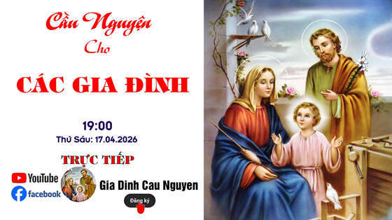 Buổi cầu nguyện “CẦU CHO CÁC GIA ĐÌNH được hiệp dâng vào tối thứ Sáu lúc 19giờ00‘ ngày 17.04.2026. Tại Giáo xứ Thánh Tống Viết Bường, GB9 Nguyễn Giản Thanh , Cư xá Bắc Hải, phường 15, Quận 10. Được trực tiếp để phục vụ cho những bệnh nhân trên giường bệnh, các cụ lớn tuổi, khuyết tật, đau yếu.