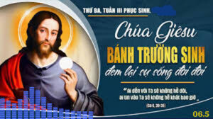 2.Suy niệm: Bài Tin Mừng hôm nay, Đức giêsu tiếp tục diễn từ về Bánh Hằng Sống. Dân chúng đòi Ngài cho một dấu lạ, vì đối với dân Galilê họ cho rằng thứ bánh mà Đức Chuá Giêsu cho họ ăn chỉ là bánh thường, không phải là bánh từ trời xuống. Chỉ có Manna thời Môi sen cho họ ăn mới là bánh bởi trời. Nhân cơ hội thấy họ khao khát Bánh Trường Sinh, Đức Giêsu đã giới thiệu cho họ biết chính Ngài là Bánh Trường Sinh. Ngày hôm nay Đức Giêsu vẫn mờigọi mỗi người chúng ta hãy đến dự tiệc Thánh và ăn Bánh Hằng Sống với niềm tin, cậy, mến, vì những ai đến với Chuá thì không hề đói và ai tin vào Chuá thì không hề khát.