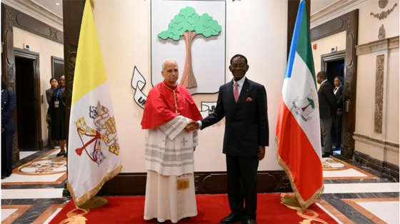Đức Thánh cha Lêô XIV thăm hữu nghị Tổng thống Teodoro O. N. Mbasogo, Guinea Xích Đạo, ngày 21/4/2026. (@Vatican Media)